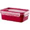 Obdĺžniková dóza s objemom 1,0 l Systém uzatvárania so 4 klipmi po stranách Funkcia ohrievania jedla v mikrovlnnej rúre pomocou ventilu Pevne vlisované tesnenie FreshSeal Bezpečné pre použitie v mikrovlnnej rúre, mrazničke a umývačke V červenej farbe