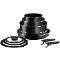 10dielna sada obsahuje: Panvice Ø 24 a 28 cm Rajnice Ø 16 a 20 cm Hlboká panvica Ø 24 cm Sklenené pokrievky Ø 16, 20 a 24 cm 2 odnímateľné rukoväte