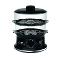 Pohodlné použitie s mechanickým časovačom 2 misky na zeleninu, ryby a mäso Miska na ryžu Odnímateľné mriežky pre veľkou kapacitou 6l Automatické vypnutie po dokončení varenia Systém pre ľahké uskladnenie Viditeľná hladina vody Možnosť doplňovania vody pri varení 60 min autonómie Príkon: 980 W