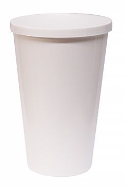 Lekárenský plastový kelímok s viečkom, s objemom 250 ml, vyrobený zo zdravotne nezávadných vstrekovaných plastov, určený najmä pre farmaceutický priemysel.