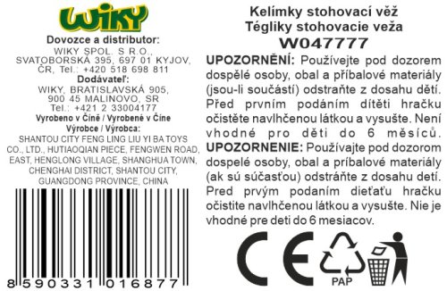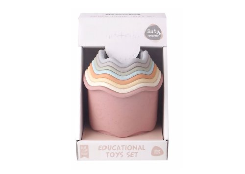 Tégliky stohovacia veža, vlnky. Balenie obsahuje 8 ks. Rozmery postavenej veže 9,8x9,8x40,8 cm.