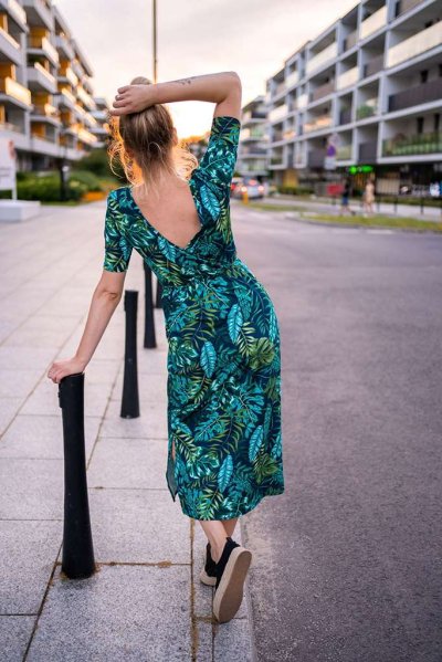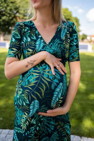 Tehotenské a dojčiace šaty Two Ways LONG milk & love. Tehotenské a dojčiace šaty Two Ways Long sú šaty, ktoré sa prispôsobia meniacim sa tvarom postavy v tehotenstve aj po pôrode. Môžete ho nosiť s výstrihom vpredu - potom je možné použiť aj ako dojčiace šaty, alebo s výstrihom na chrbte. Po dokončení dojčenia sa dajú stále používať ako „obyčajné“ šaty. Dlhé šaty Two Ways Long sa dajú štylizovať na rôzne príležitosti - hodia sa predovšetkým na väčšie rodinné akcie, napríklad ako šaty na krst. Skvele bude vyzerať aj v ležérnom štýle s teniskami alebo balerínami. Dlhé elegantné tehotenské šaty z ľahkej viskózy s krásnou tropickou potlačou. Šaty sú ušité z najkvalitnejšej priedušnej látky, ktoré prešli prísnymi testami Oeko-Tex Standard 100. Vďaka nim je oblečenie mäkké a príjemné na dotyk pre mamičku aj dieťa. Pri výbere veľkosti tehotenských a dojčiacich šiat Two Ways Long sa riaďte veľkosťou, ktorú aktuálne nosíte. Pokiaľ váhate medzi dvoma veľkosťami - zvoľte tú menšiu. Rozmerová tabuľka je posledná fotografia. Zloženie: 92% viskóza, 8% elastan.