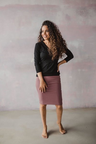Tehotenské a dojčiace tričko Milk Shirt milk & love s výstrihom do V. Tričko, ktoré uľahčí dojčenie je vyrobené z kvalitnej bavlny s prídavkom elastanu, vďaka ktorému sa nevyťahuje a po vypraní sa vracia do pôvodného tvaru. Preto vyzerá skvele aj po tehotenstve a je možné ho používať aj pri dojčení. Jednoduché otváranie "slučkou" umožňuje veľmi rýchlo nakŕmiť hladné bábätko. Správny strih, ktorý zakryje drobné nedostatky postavy, ktorá sa ešte nespamätala z tehotenstva a dostatočne dlhý, aby zakryl chrbát. Elastická látka pojme aj tehotenské bruško. Pri výbere veľkosti sa riaďte veľkosťou, ktorú aktuálne nosíte. Oblečenie je vyrobené z elastickej látky, preto sa prispôsobí veľkosti tehotenského bruška a meniacim sa tvarom tela. Oblečenie sa meria naplocho, takže rozmery uvedenej tabuľke-(poslednej fotografie) najlepšie porovnáte s rozmermi oblečenia, ktoré vám aktuálne sedia. Najkvalitnejšie priedušné látky, ktoré prešli prísnymi testami Oeko-Tex Standard 100. Vďaka nim je oblečenie mäkké a príjemné na dotyk pre mamičku aj dieťa. Zloženie: 92% bavlna, 8% elastan. Dĺžka rukávov 7/8.