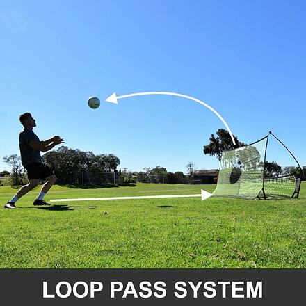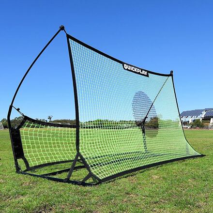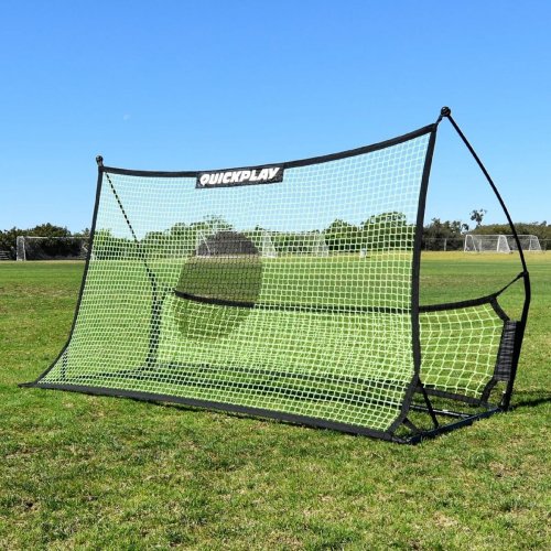 Futbalová nahrávacia sieť Quickplay Tekkers Trainer Dual Net je účinná tréningová pomôcka, vďaka ktorej si zlepšíte techniku prihrávok a spracovania loptu . Systém dvoch sietí umožňuje intenzívny nácvik presnosti, sily a kontroly lopty zo zeme i zo vzduchu. Je ideálny pre tímový aj sólový tréning a vhodný pre všetky vekové kategórie. Tento prenosný futbalový trenažér dokážete zostaviť behom pár minút a súčasťou je aj taška, vďaka ktorej rozložený trenažér ľahko uskladníte a prenesiete. Do trávy ho upevníte pomocou priložených kovových kolíkov. - jednoduchá montáž - patentovaný design FLEXI POST - materiál: oceľ, sklolaminát, polyester - celkové rozmery: 198 cm (šírka), 122 cm (výška), 91 cm (hĺbka) - hmotnosť balenia: cca 6,5 kg - rozmery balenia: 92 x 15 x 15 cm