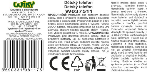 Telefón smartphone zvieratká. Veľkosť 15cm. Veľkým tlačidlom sa menia zvuky, ktoré vydávajú tlačidlá so zvieratkami. Zvuky zvieratiek, melódie a iné zvuky. svetelné efekty. tlačidlo on/off. Batéria 2xAAA súčasťou.