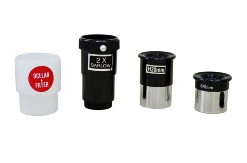 Vstavaný zásobník na príslušenstvo udržuje po ruke okuláre. Teleskop je vybavený jedným 6mm a jedným 20mm okulárom a 2 Barlowovými šošovkami , ktoré znásobujú ohniskovú vzdialenosť ďalekohľadu. Rozsah zväčšenia je v základnej konfigurácii od 25x až do 167x . Hľadáčik s červenou bodkou vám uľahčí teleskop nasmerovať na ľubovoľný astronomický objekt.