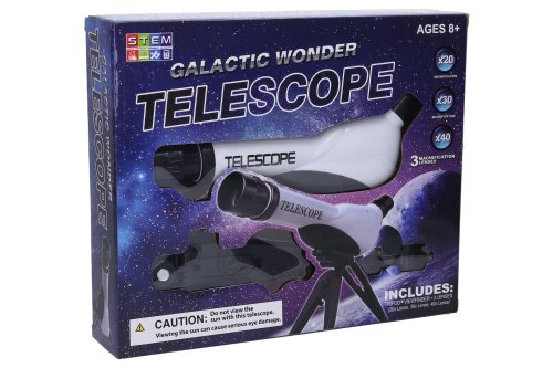 Ďalekohľad hvezdársky. zväčšenie 20x, 30x a 40x. Obsahuje teleskop, statív, vymeniteľné šošovky s rôznym priblížením. Otáčaním objektívu sa zaostruje. Obraz pri pohľade cez teleskop je zrkadlovo obrátený.