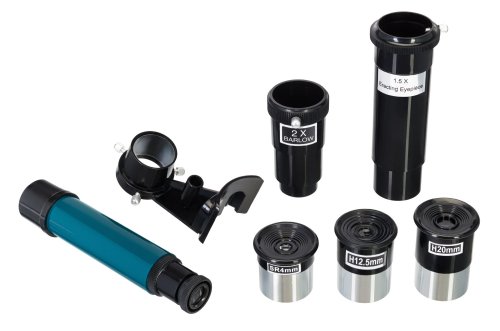 Bohaté príslušenstvo potom bolo starostlivo vyberané tak, aby bolo možné využiť všetky kľúčové vlastnosti optiky. Navyše môžu mladé dievčatá a chlapci začať s pozorovaním ihneď po vybalení prístroja z krabice , nič ďalšie už nepotrebujú. S 3 okuláre (6, 12,5 a 20mm) a Barlowovou šošovkou tak dosiahnu najvyšší možný výkon , ktorý umožní pozorovanie astronomických objektov v najvyššom možnom detaile. Pri práci s teleskopom v rámci pozemných pozorovaní môžete použiť dodávaný 1,5x vzpriamujúci okulár , ktorý ponúka neprevrátený a nezrkadlený obraz, takže tento teleskop poslúži aj ako pozorovací ďalekohľad .