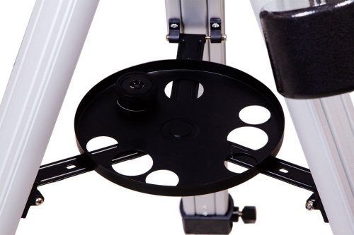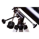K ďalekohľadu je možné pripevniť zrkadlový fotoaparát, takže sa hodí pre potreby astrofotografie s dlhšími expozíciami. Tento teleskop sa totiž dodáva vrátane ekvatoriálnej (paralyktickej) montáže EQ1 s polárnou osou , ktorá umožní plynulo opisovať oblúkovitý pohyb nebeských telies. Táto montáž sa tak hodí na dlhodobé sledovanie jedného objektu s veľkým zväčšením aj vo väčšej skupine astronómov. So správnym nasmerovaním optického tubusu vám potom pomôže optický hľadáčik Red Dot , ktorý sa pýši až 6násobným zväčšením. Montáž je pripevnená k hliníkovému statívu, nohy statívu majú nastaviteľnú výšku ak dispozícii je aj odkladacia priehradka na príslušenstvo .