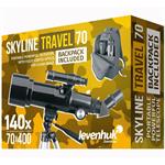 Levenhuk Skyline Travel 70 je šošovkový ďalekohľad , ktorý zaisťuje zväčšenie až 140x a obsahuje dva okuláre, optický hľadáčik, Barlowovu šošovku a diagonálne zrkadlo. Ostrý a čistý obraz bez aberácií umožňuje sklenená optika s antireflexnou vrstvou na všetkých aktívnych plochách. Optický tubus je nainštalovaný na hliníkovom statíve s nastaviteľnou výškou. Teleskop je vhodný pre začiatočníkov na pozorovanie povrchu Mesiaca, planét slnečnej sústavy, najjasnejších objektov hlbokého vesmíru a pozemného pozorovania.