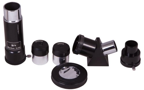 Sada obsahuje diagonálne zrkadlo, ktoré zaisťuje vzpriamený (neskreslený) obraz. Ďalekohľad je preto vhodný aj na pozorovanie pozemných objektov – možno ho použiť ako výkonný spektív. Sada tiež obsahuje okuláre 67x a 20x, Barlowovu šošovku 3x a slnečný filter. Najvyšší užitočný výkon teleskopu je 140x. Praktický hľadáčik 5 x 24 umožňuje rýchle vyhľadanie pozorovaného objektívu na nočnej oblohe. Pomocou príslušenstva na okamžité použitie môžete dosiahnuť 200-násobné zväčšenie.