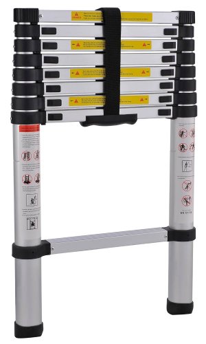 Pokiaľ bojujete vo svojej dielni alebo v domácnosti s nedostatkom úložného priestoru, je pre vás tento skladací hliníkový teleskopický rebrík ideálnou voľbou! Keď je zložený, meria iba 0,74 m , takže sa vám s ním bude aj pohodlne manipulovať či už ho budete presúvať alebo prevážať autom. Jeho konštrukčné prvky, stupnice a poistné zámky sú prevedené podľa ergonomických zásad a podporujú tak jeho jednoduché a intuitívne používanie.