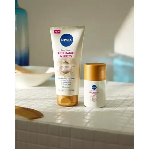 Túžite po zjednotenej pokožke, ktorou sa nebudete hanbiť ukázať? Doprajte jej poriadnu starostlivosť, ktorá presne zacieli na jej pálčivé miesta. Ošetrujúce zloženie ju bude nielen rozmaznávať, ale posvieti si na strie, škvrny od slnka a iné pigmentové škvrny. Vďaka patentovanej látke LUMINOUS630 telový krém zjednocuje tón pokožky a redukuje viditeľnosť strií aj pigmentových škvŕn už za 4 týždne pravidelného používania. Navyše pokožku okamžite intenzívne vyživí. A to tak, že sa bude cítiť skvele hydratovaná až 48 hodín.