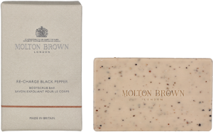 Telový peeling Re-charge Black Pepper je hydratačný telový peeling zmiešaný s olejom z madagaskarského čierneho korenia, aromatickým bergamotom a dubovým machom.