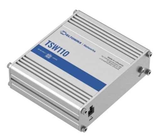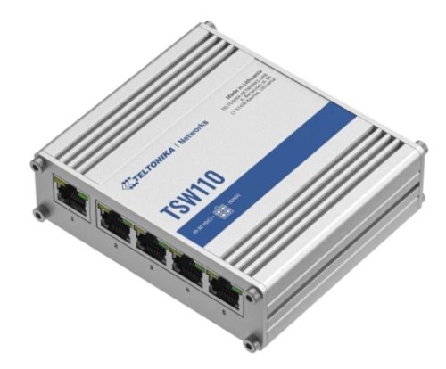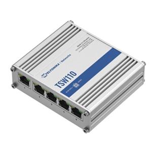 TSW110 je nespravovaný ethernetový prepínač vrstvy 2. Toto malé, ale odolné profesionálne zariadenie umožňuje priemyselné aplikácie s veľkou šírkou pásma so spoľahlivým dátovým pripojením. Má päť gigabitových ethernetových portov na pripojenie zariadenia k sieti a podporuje široké napájacie napätie (9-30 V).