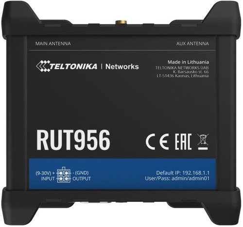 Teltonika RUT956 je priemyselný smerovač, ktorý kombinuje možnosti mobilného, Wi-Fi a káblového pripojenia s automatickým prepojením WAN a funkciami GNSS. Sériové komunikačné rozhrania umožňujú integrovať do ekosystému riešenie viacerých rôznych zariadení, zatiaľ čo I/O a pokročilý softvér RutOS uľahčujú ovládanie zariadenia, automatizáciu a upozorňovanie na udalosti.
