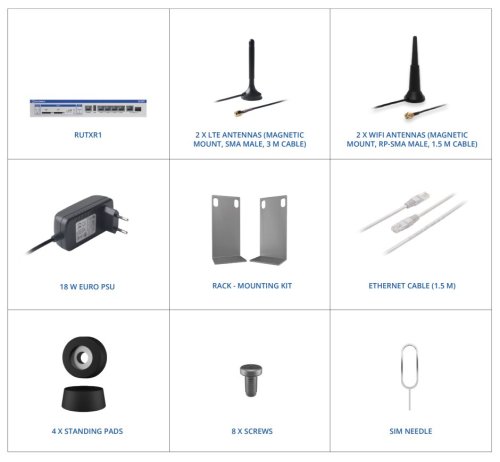 Teltonika RUTXR1; Odolný a výkonný rack LTE Cat6 router s Wi-Fi, ktorý je vybavený dvoma slotmi pre SIM, piatimi GbE RJ-45 portami a SFP slotom.