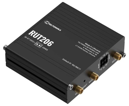 Teltonika RUT206; Priemyselný mobilný router, ktorý poskytuje spoľahlivé pripojenie v náročných podmienkach priemyselného odvetvia (automatizácia, doprava, výroba atď.).