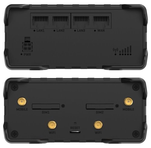 Porty: 4× RJ-45 (3× LAN, 1× WAN), 2× SIM slot (mini SIM, formát 2FF)