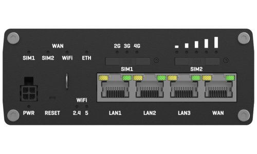 Porty: 4× RJ-45 (1× WAN, 3× LAN), 2× SIM slot (mini SIM, formát 2FF), 1× USB, 1× digitálny vstup, 1× digitálny výstup