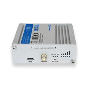 Tento priemyselný mobilný modem je vybavený technológiou 4G/LTE (Cat 4) a je spätne kompatibilný s 3G a 2G. Rovnako ako ostatné produkty radu TRB ponúka širokú škálu softvérových funkcií, ako je SMS ovládanie, VPN, IPsec, firewall a podpora FOTA. Dodáva sa aj so softvérom založeným na OpenWRT, takže ponúka vysoký stupeň prispôsobenia. Brána je odolná, dostupná v rôznych podporovaných napájacích napätiach a je kompatibilná so systémom vzdialenej správy (RMS) Teltonika Networks. Vďaka svojmu kovovému obalu je vhodný aj na použitie vo vonkajšom prostredí.