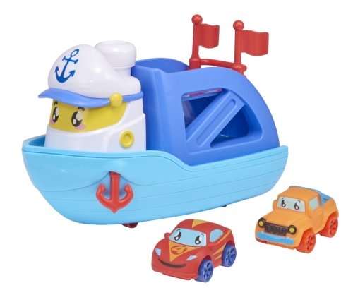 Ahoj kapitán! Pripravte sa na plavbu s trajektom Tiny Teamsterz. Súčasťou sú 2 voľné autá Tiny Teamsterz, sú mäkké a ľahko uchopiteľné a navrhnuté v jasných, zábavných farbách s priateľskými tvárami. Voľný trajekt pláva na vode a pohyblivá nakladacia rampa umožňuje ľahkú prepravu na hornú alebo spodnú palubu. Kombinácia všetkých týchto funkcií so zaoblenou estetikou robí tento vznášajúci sa malý trajektový čln Teamsterz atraktívny pre predškolské deti a začínajúcich námorných kapitánov. Vhodné pre vek 12 mesiacov +.