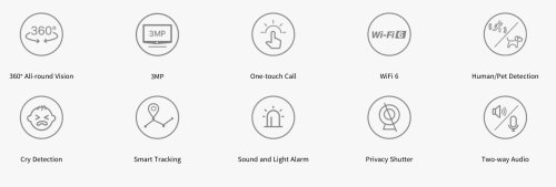 Vnútorná IP kamera s AI detekciou pohybu, WiFi 6, a 2K rozlíšením 2304 x 1296 (3MP), zabezpečenie WPA3-SAE, prenosom zvuku, rotácia 360 ° horizontálne a 155 ° vertikálne, nočné videnie s dosvitom 12 m, sledovanie S-Motion + S-tracking, vstavaný mikrofón, vstavaný reproduktor a siréna, cloud platforma, slot pre SD kartu max. 256 GB, detekcia plaču, volanie pomocou jedného tlačidla, aplikácia pre Android a iOS v češtine.
