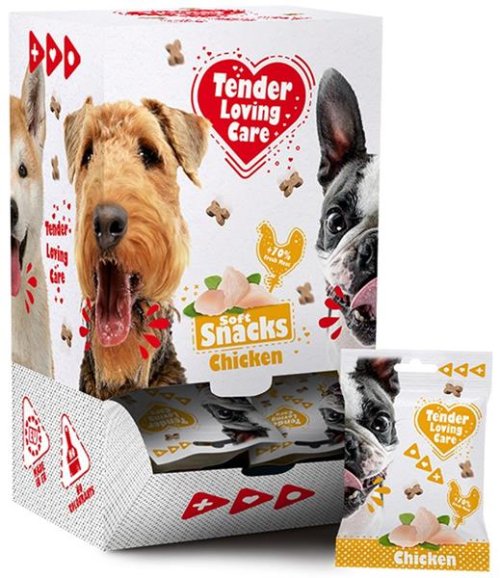 Maškrty Duvo+ Tender Loving Care sú veľmi chutné a mäkké maškrty pre psov. Sú vyrábané v EÚ a neobsahujú žiadne umelé farbivá ani arómy. Táto bezlepková varianta so kuraťom obsahuje viac ako 70% čerstvého mäsa, ryže a oreganového oleja pre optimálnu štruktúru a chuť. Hypoalergénna maškrta bez genetických modifikácií je ideálna pre tréning psa. Sú vhodné pre všetky psy od šiestich mesiacov. Výhody: Vysoký obsah čerstvého mäsa (70%). Bez umelých aróm a farbív. Vyrobené v EÚ. Bezlepkové, bez GMO a hypoalergénne. Ideálna na tréning. Zloženie: Mäso a produkty živočíšneho pôvodu (30,6 % kuracie), obilniny (7,7 % ryže), vedľajšie výrobky rastlinného pôvodu, minerálne látky. Analytické zložky: Hrubý proteín 24,1 %, obsah tuku 10,2 %, hrubá vláknina 1,36 %, hrubý popol 12,0 %. Doplnkové látky: obsahuje EÚ povolená konzervanty a antioxidanty. Kŕmny návod: Odporúčame podávať pod dohľadom, slúži ako doplnenie bežnej kŕmnej dávky. Zaistite psovi vždy dostatok pitnej vody. Nie je určené pre ľudskú spotrebu.