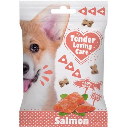Lahodné mäkké maškrty pre psov. Maškrty sú vyrábané v EÚ a neobsahujú žiadne umelé farbivá ani dochucovadlá. Bezlepková verzia s lososom obsahuje viac ako 10% čerstvých rýb a 50% čerstvého mäsa, s ryžou a olejom z oregana pre optimálnu textúru maškrty a chuť. Ideálna odmena pri tréningu. Bez GMO a sú hypoalergénne. Pre všetky plemená psov od 6 mesiacov.