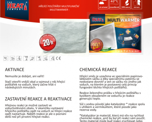 Multifunkčný hrejúci vankúšik (Multiwarmer) poskytuje príjemné a zdravé teplo po celý deň, po dobu až 20 hodín. Multifunkčný hrejivý vankúšik môže byť používané celoročne a môže pomôcť zmierňovať stres. Po tom, čo prestane multifunkčný hrejúci vankúšik hriať, ho vyhoďte do bežného domáceho odpadu.