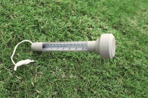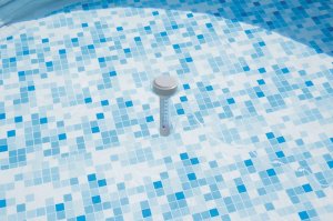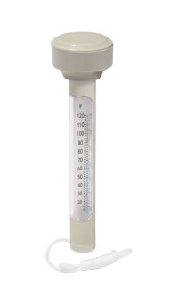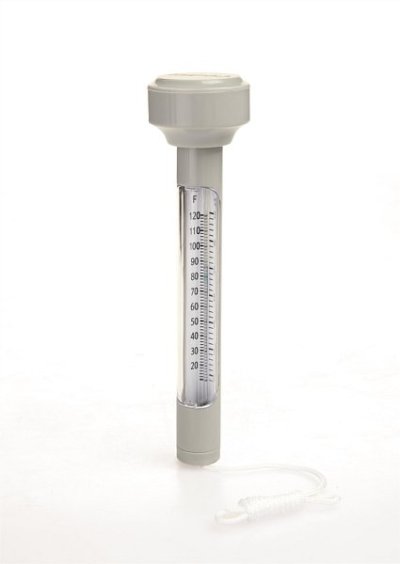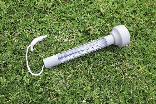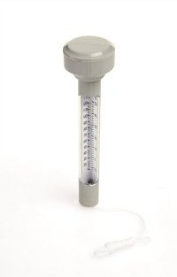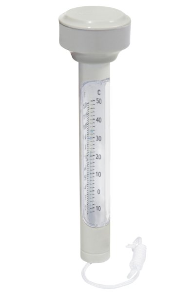 Bazénový teplomer. Konštrukcia ABS. Ľahko čitateľná teplota v stupniciach Celzia in Fahrenheita. Plávací teplomer je na šnúrke, aby sa nemohol voľne pohybovať po bazéne. Obsahuje: 1 bazénový teplomer.