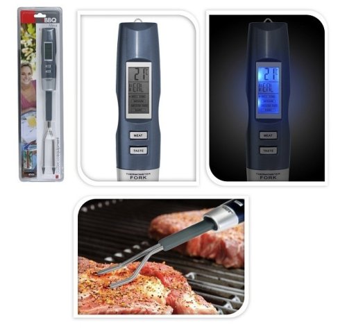 Pokiaľ radi pracujete v kuchyni a pripravujete chutné pokrmy, potom chcete aj kuchynský teplomer. Teplota vašich pokrmov vypovedá veľa o prepečenosti jedla, napríklad o teplote mäsa. S kuchynským teplomerom uvidíte, či je vaše jedlo hotové bez krájania, a navyše môžete byť včas pri tom, aby sa vaše mäso neprepieklo. Týmto spôsobom si vychutnáte ten najchutnejší a najjemnejší výsledok . Tento teplomer pri pečení vložíte do mäsa a meriate teplotu jadra. Preto je tento kuchynský teplomer známy aj ako jadrový teplomer alebo teplomer na mäso. Potravinový teplomer využijete predovšetkým na väčšie kusy mäsa, ako je celé kura, morka, hovädzie čižmy alebo roláda. Hodí sa aj na grilovanie. Digitálny so širokým rozsahom Tento digitálny teplomer má široký rozsah teplôt od 0 do 120 stupňov Celzia. Chceli by ste radšej merať v stupňoch Fahrenheita? To je tiež možné, s rozsahom 32 až 248 stupňov Fahrenheita. Výhodou digitálneho kuchynského teplomera je, že presne zobrazuje teplotu. Predprogramovan é druhy mäsaTento digitálny teplomer na mäso má rôzne predprogramované nastavenia, takže ľahko zistíte, či bola dosiahnutá správna teplota v závislosti od druhu mäsa a požadovanom spôsobe prípravy. Môžete ho nastaviť na prípravu hovädzieho (Beef), teľacieho (Veal), jahňacieho (Lamb) a bravčového mäsa (Pork) a kuracieho (Chick) a morčacieho (Turk) mäsa. Tieto druhy mäsa vyberáte pomocou tlačidla Meat. Potom pomocou tlačidla „TASTE“ vyberte stupeň varenia zo 4 úrovní: Rare - jemeMedium rare - stredne jemneMeduim - stredneWell done - plneAkonáhle nastavíte preferencie, vložte teplomer do mäsa. Pre dobré meranie zasuňte sondu do polovice najhrubšej časti mäsa. Udržujte sondu mimo kostí a tukových častí. Akonáhle teplomer nameria minimálnu teplotu v požadovanom rozsahu, zaznie alarm.Hodnotu odčítate na obrazovke, ktorá je vybavená osvetlením. Na mäso si môžete posvietiť malým LED svetlom. Aj pri slabom osvetlení jasne vidíte, či je vaše mäso hotové. To sa hodí najmä pri večernom grilovaní.- digitálny teplomer na mäso model vidlička- dlhý variant vhodný na grilovanie- materiál: plast / nerez- celková dĺžka: 34 cm- teplotný rozsah: mínus 20 až + 300 ° C- napájanie: 2x AAA batérie , sú súčasťou balenia- značka: PROGarden