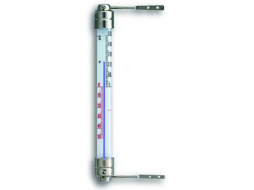 Okenný teplomer s prehľadnou stupnicou na vonkajšie použitie vhodný na pripevnenie na rám okna.