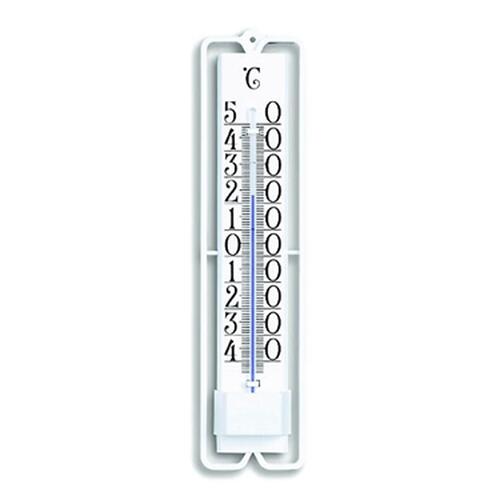 Vonkajší závesný kvapalinový teplomer s prehľadnou stupnicou je vhodný na pripevnenie na rám okna.
