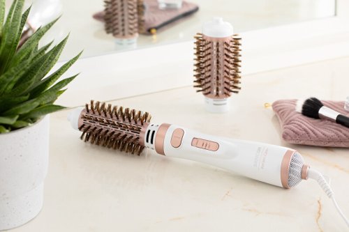 Teplovzdušná kulma s 2 teplotnými stupňami a 2 výmennými nástavcami.