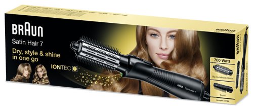 Nová teplovzdušná ondulačná kefa Braun Satin Hair 7 upraví vaše vlasy šetrne a efektívne, takže budú každý deň krásne a lesklé, či už máte akýkoľvek strih alebo dĺžku vlasov. Inovačná technológia IONTEC Rovnako ako všetky prístroje radu Braun Satin Hair 7 obsahuje aj teplovzdušnú ondulačnú kefu Braun Satin Hair 7 prelomovou inovačnou technológiou IONTEC. IONTEC je jedinečná technológia určená špeciálne na ochranu zdravia vašich vlasov. Preto je tiež zárukou zdravej úpravy vlasov. Zelené iónové trysky uvoľnia do vlasov pri ich úprave efektívne milióny saténových iónov, ktoré pritiahnu čiastočky vlhkosti zo vzduchu. Výsledkom je bezchybný, žiarivo lesklý účes, ktorý odráža zdravie vašich vlasov. Vyvážený obsah vlhkosti Saténové ióny obklopia každý jednotlivý vlas a rýchlo obnovia rovnováhu jeho vlhkosti, ktorá sa obvykle pri úprave vlasov teplom stráca. Antistatická úprava vlasovVďaka jedinečnej iónovej technológii vznikne bohatý prúd saténových iónov, ktoré obklopia každý jednotlivý vlas. Toto pokrokové pôsobenie iónov funguje pri úprave vlasov ako prirodzený zvlhčovací prostriedok, ktorý obmedzí polietavosť vlasov a ich statický náboj. Vaše vlasy budú nádherne žiarivé a hladké. Ochrana pred lámaním vlasovŠpeciálne navrhnuté nástavce s kefou a hrebeňom chránia vďaka svojej unikátnej technológii hladkých hrotov vlasovej kutikuly pred poškodením a lámaním. Filter s mriežkouGeniálny filter s mriežkou v zadnej časti ergonomicky tvarovanej rukoväte pomáha predchádzať lámaniu vlasov. Zabraňuje tomu, aby boli vlasy vtiahnuté do prístroja, kde by sa mohli zamotať. Vďaka tomu je úprava vlasov ešte bezpečnejšia. Osobné nastaveniaIndividuálna úprava vlasov si žiada možnosť individuálneho nastavenia. Dva stupne nastavenia umožňujú prispôsobiť teplotu a intenzitu prúdenia vzduchu podľa vašich potrieb. Môžete si byť istá, že teplota a intenzita prúdenia vzduchu vždy presne zodpovedá typu vašich vlasov, takže tie sa potom pri úprave nepresušia.