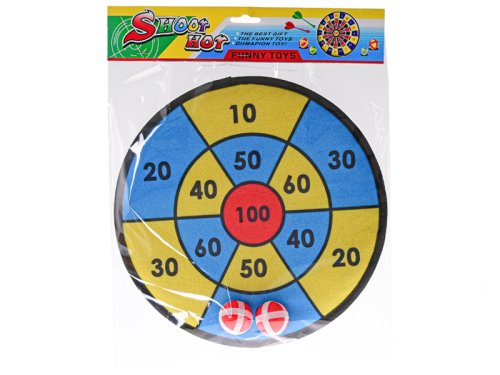 Potrénujte svoju presnosť a trpezlivosť. Cieľom hry je nahádzať čo najviac bodov. Terč je na suchý zips a veľkosť terča je 29 cm. Set obsahuje aj 2 ks loptičiek.