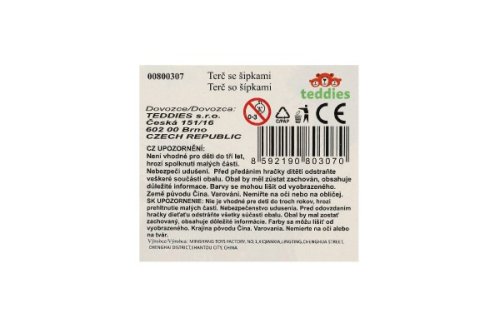 Strieľanie šípok na terč je veľmi obľúbenou zábavou pre deti. Obsahuje 2 ks lepiacich šípok a terč s priemerom 15,5 cm. Rozmery balenia 19 x 25 x 2 cm. Vhodné pre deti od 3 rokov.