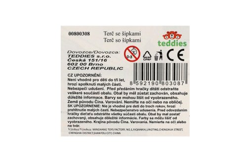 Strieľanie šípok na terč je veľmi obľúbenou zábavou pre deti. Obsahuje 2 ks lepiacich šípok a terč s priemerom 23 cm. Rozmery balenia 27 x 34 x 2 cm. Vhodné pre deti od 3 rokov.