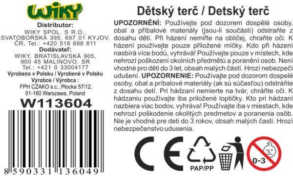 1 x terč 3 x loptička Odporúčaný vek: od 3 rokov
