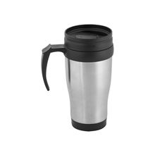 Kovový termohrnček s plastovým uchom a zatvárateľným otvorom na pitie vo viečku