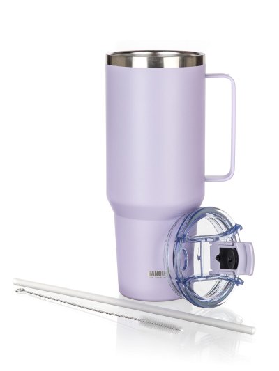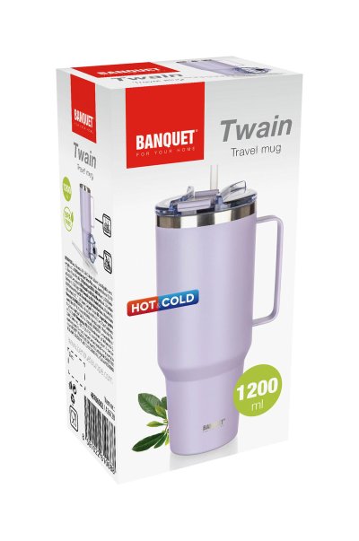 Dvojstenný cestovný termohrnček TWAIN, vo farbe lila, je vhodný na teplé aj studené nápoje. Vonkajšia časť je vyrobená z nerezu 201, vnútorná časť z nerezu 304 a viečko z plastu. Telo hrnčeka je vákuové, udrží tak nápoje dlhšie horúce či studené. Viečko nie je nepriepustné, odporúčame uchovávať vo zvislej polohe. Súčasťou balenia je PP slamka a kefka na čistenie slamky.