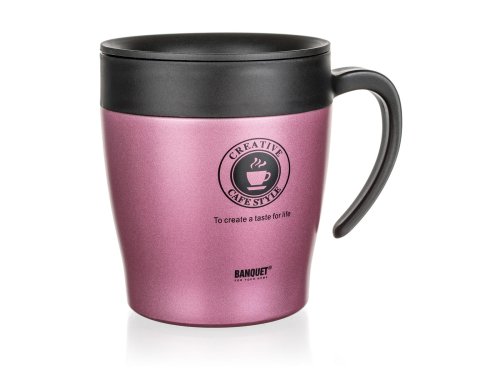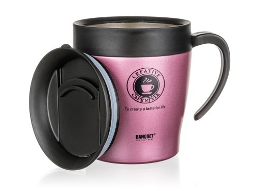Dvojstenný cestovný termohrnček TAZZA v ružovej metalickej farbe, je vhodný na teplé aj studené nápoje. Vonkajšia časť je vyrobená z nerezu 201, vnútorná časť z nerezu 304 a viečko z plastu. Využiteľný objem je 330 ml. Telo hrnčeka je vákuové, udrží nápoje dlhšie horúce či studené. Viečko nie je nepriepustné, odporúčame uchovávať vo zvislej polohe.