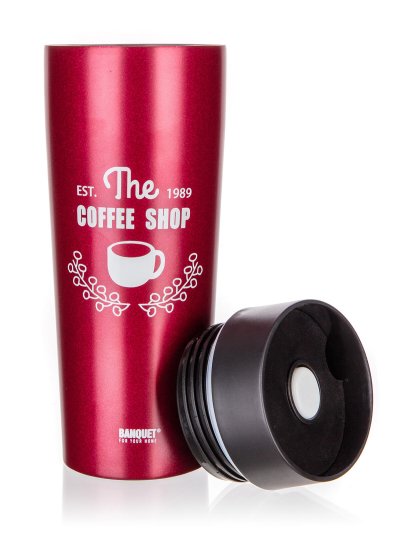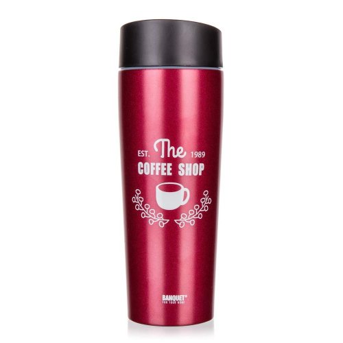Termohrnček cestovný COFFEE 350 ml vo farbe Bordo, vonkajší povrch nerez 14/1 (201), vnútorný povrch nerez 18/8 (304), plast PP (polypropylén). Telo hrnčeka je vákuové, udrží nápoje dlhšie horúce či studené. Viečko nie je nepriepustné, odporúčame uchovávať vo zvislej polohe.