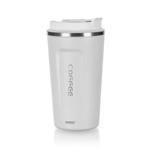 Dvojstenný cestovný termohrnček ARTY v bielej farbe, je vhodný na teplé aj studené nápoje. Vonkajšia časť je vyrobená z nerezu 201, vnútorná časť z nerezu 304 a viečko z plastu. Využiteľný objem je 450 ml. Telo hrnčeka je vákuové, udrží nápoje dlhšie horúce či studené. Viečko nie je nepriepustné, odporúčame uchovávať vo zvislej polohe.
