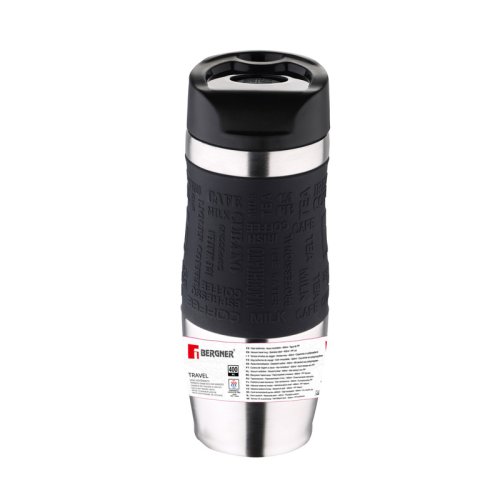 Termohrnček s protišmykovým úchopom 400 ml čierna / nerez BG-5958-BK