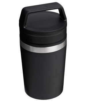 Nerezový Termohrnček The Café-To-Go Travel Mug v čiernej farbe - na šport, na pláž, do posilňovne, do auta, na dovolenku. Tam všade sa vám STANLEY 1913 Termohrnček The Café-To-Go môže hodiť. Svojou praktickosťou, praktickým madlom na nosenie a dostatočným objemom. Je možné ho umývať v umývačke riadu a má všetku odolnosť, na ktorú sa u značky Stanley 1913 môžete spoľahnúť. Vnútri tohto dizajnového kúsku sa skrýva robustná konštrukcia z potravinárskej nerezovej ocele s dvojstennou vákuovou izoláciou, ktorá udržuje nápoje chladné až 4 hodín alebo horúce 3 hodiny. Unikátny systém umožňuje použiť buď len jedno alebo obe viečka: