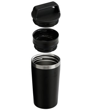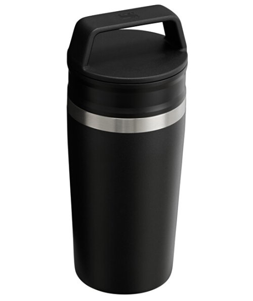 Nerezový Termohrnček The Café-To-Go Travel Mug v čiernej farbe - na šport, na pláž, do posilňovne, do auta, na dovolenku. Tam všade sa vám STANLEY 1913 Termohrnček The Café-To-Go môže hodiť. Svojou praktickosťou, praktickým madlom na nosenie a dostatočným objemom. Je možné ho umývať v umývačke riadu a má všetku odolnosť, na ktorú sa u značky Stanley 1913 môžete spoľahnúť. Vnútri tohto dizajnového kúsku sa skrýva robustná konštrukcia z potravinárskej nerezovej ocele s dvojstennou vákuovou izoláciou, ktorá udržuje nápoje chladné až 5 hodín alebo horúce 4 hodiny. Unikátny systém umožňuje použiť buď len jedno alebo obe viečka: