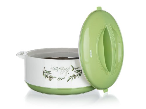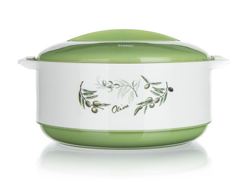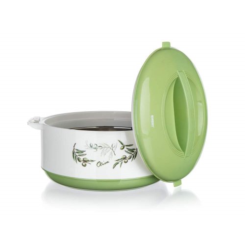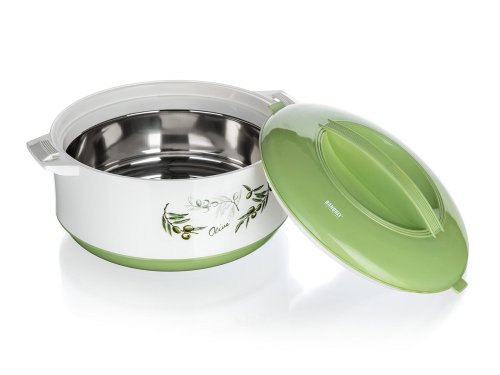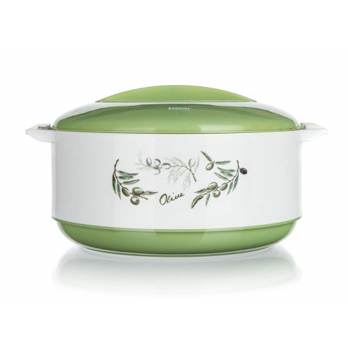 Termomisa OLIVES s pokrievkou. Praktický termohrniec na uchovávanie teplých pokrmov. Vnútro hrnca tvorí nerezová vložka, výplň medzi stenami je z PUR peny na zachovanie vynikajúcej izolácie pri skladovaní či prenášaní potravín. Termohrniec ocenia hlavne kuchári a kuchárky pri uskladnení hotových pokrmov pred samotným servírovaním.