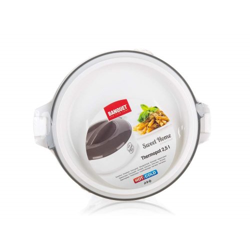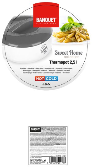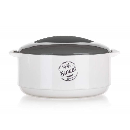 Termomisa s pokrievkou SWEET HOME je praktická na uchovávanie teplých pokrmov. Ocenia ju hlavne kuchári a kuchárky pri uskladnení hotových pokrmov pred samotným servírovaním. Vo farebnom prevedení bielo - šedá s dekorom SWEET HOME. Vnútro hrnca tvorí nerezová vložka, výplň medzi stenami je z PUR peny na zachovanie vynikajúcej izolácie pri skladovaní či prenášaní potravín.